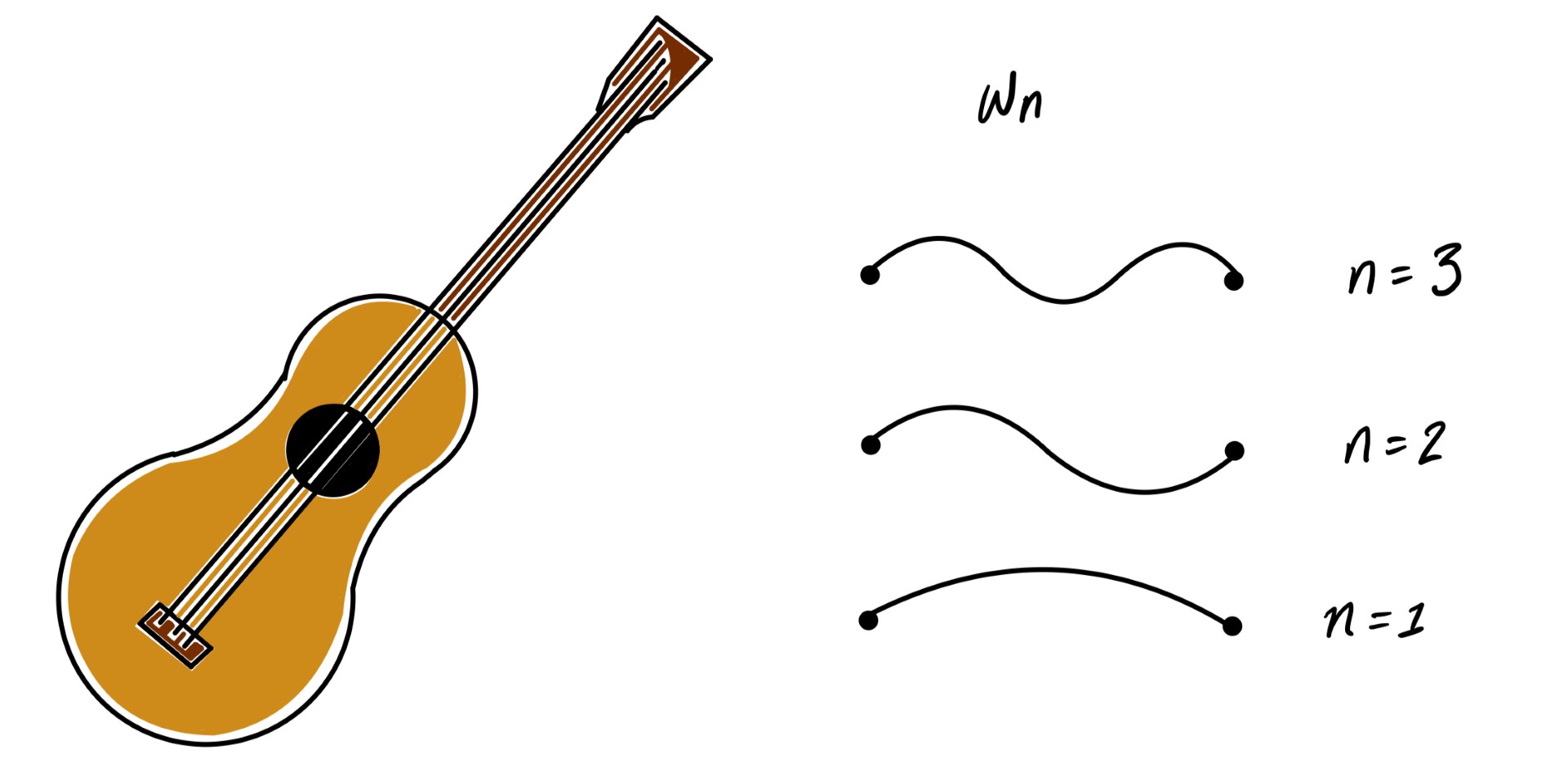Each string on a guitar has a set of characteristic resonant frequencies called normal modes. Those frequencies are labelled by a mode number, here 'n'.